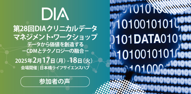 - 2025年2月17日-18日に開催の「第28回DIAクリニカルデータマネジメント・ワークショップ」の演題募集を開始しました。