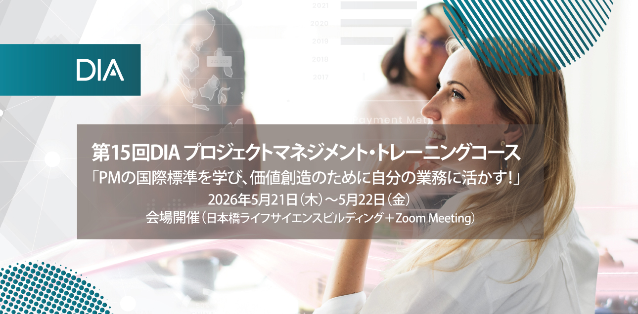 - 2026年5月21日(木)-5月22日(金)に会場開催いたします「第15回DIAプロジェクトマネジメント・トレーニングコース」のフライヤー公開、および参加登録を開始いたしました。